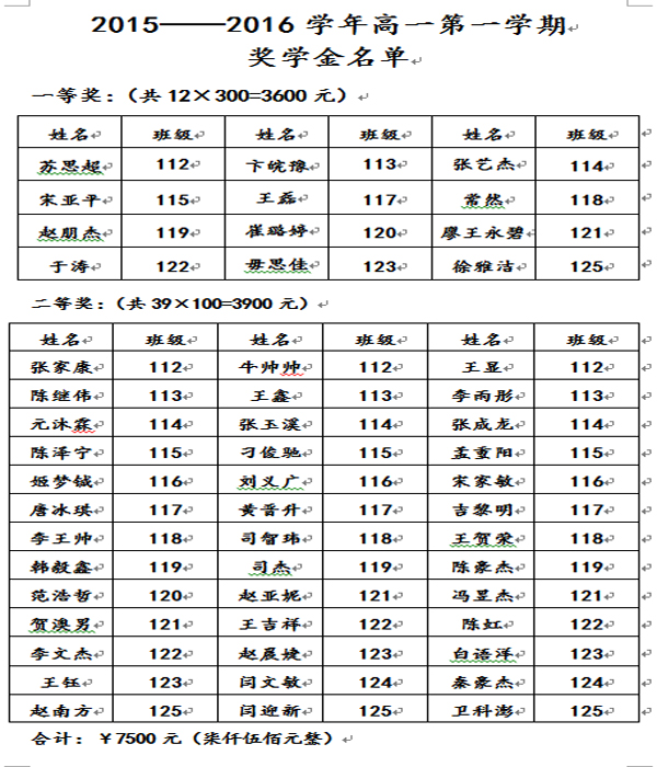 上一篇: 2015—2016学年高二第一学期奖学金名单